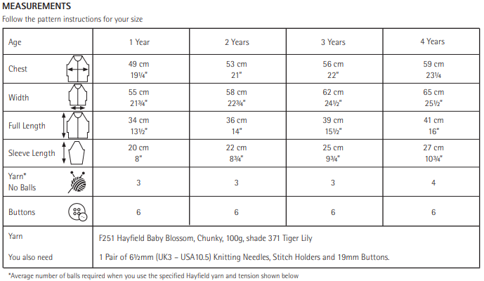 This Hayfield Baby Blossom Chunky Duffle Coat 5566 is perfect for your next project and only requires 3 - 4 balls of yarn to complete. It would suit an Intermediate Knitter.